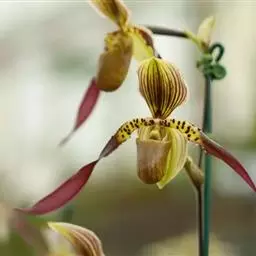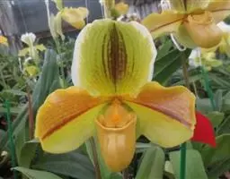 喉红石斛:附生。茎丛生,直立,粗短,近棒状纺锤体。叶2-4枚,生于茎顶。总状花序顶生,花序轴长5-…