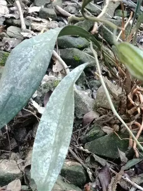无距虾脊兰:假鳞茎近圆锥形,粗约1厘米,具3-4枚鞘和2-3枚叶。叶在花期尚未完全展开,…