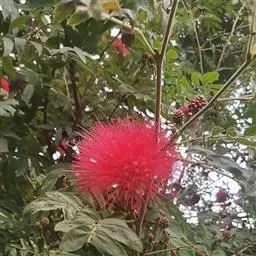 朱缨花,豆科朱缨花属的多年生木本植物,枝条扩展,小枝褐色;叶片呈卵状披针形;头状花序腋生,…