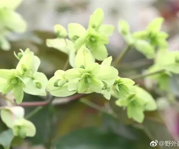花序与叶对生,比叶长,常分枝,圆锥花序密生许多小花;花苞片向外伸展或稍反折,卵状披针形,长2-5毫米,先端钻状;花梗和子房长6-10毫米;花不甚开放,萼片和花瓣淡黄色或黄绿色,质地较厚;中萼片宽卵形,凹的,长4-5毫米,宽约4毫米,先端钝;侧萼片斜宽卵形,与中萼片等大,先端近锐尖。