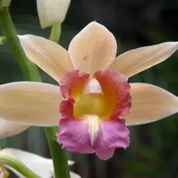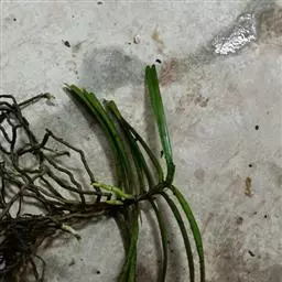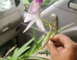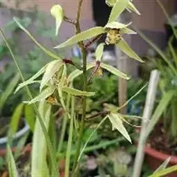 寄树兰(学名:Robiquetia succisa (Lindl.) Seidenf. et Garay):茎坚硬,圆柱形,长达1米,粗5毫米,节间长约2厘米,下部节上具发达而分枝的根。叶二列,长圆形,先端近截头状并且啮蚀状缺刻。花序与叶对生,比叶长,常分枝,圆锥花序密生许多小花;花不甚开放,萼片和花瓣淡黄色或黄绿色,质地较厚;花瓣较小,宽倒卵形,先端钝;唇瓣白色,3裂;侧裂片直立,耳状,长约4毫米,宽2毫米,先端钝并且带紫褐色,边缘稍波状。蒴果长圆柱形,成熟后倒垂。花期6-9月,果期7-11月。