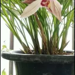 上盆(或翻盆)时间一般在春季3-4月或秋季10-11月。花盆以口小、盆深、底孔大的为佳。新从山上挖来的野生苗需理植于瓦盆(泥盆)中,这样兰花泥易干,通气性好.容易发根;2-3年后方可换人紫砂盆或瓷盆。兰花种植(在盆中)的方法与一般花卉不同,尤其是名种兰花,翻种移盆必须洗根。方法足将根浸入清水中,用旧牙刷或毛笔轻轻洗刷,切勿用力过大伤根;用剪刀将残叶、黄叶、断裂根、发黑腐烂根剪去,注意勿伤幼芽。然后将处理好的植株放在阴凉通风处晾干,待根部发白并显细小皱纹柔软时,再植入盆中。