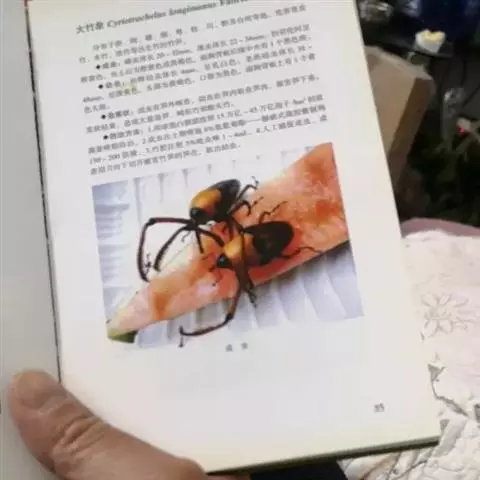 斗米虫为锈色粒肩天牛的幼虫,锈色粒肩天牛主要危害槐树Sophora japonica,…