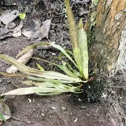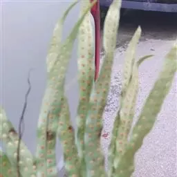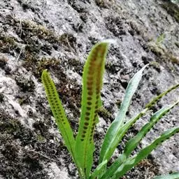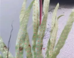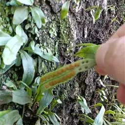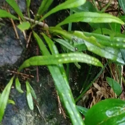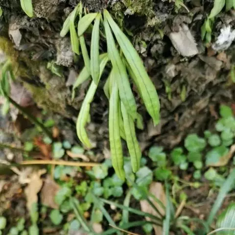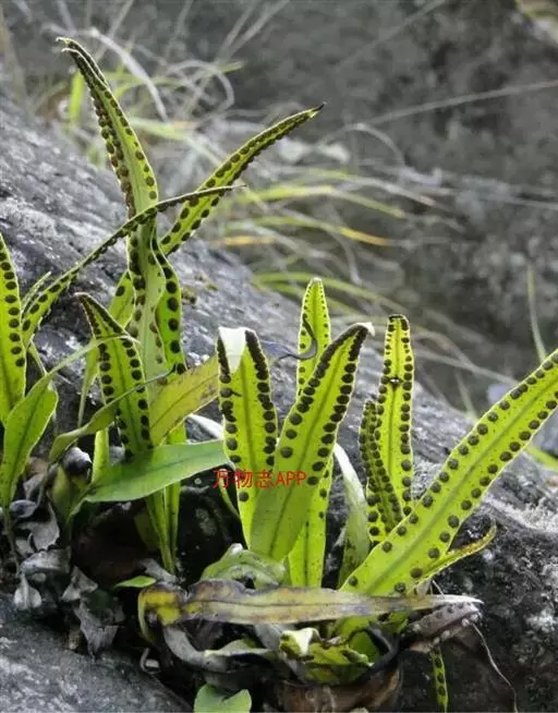 植株高约15-30厘米。根状茎短促横卧,密被卵状披针形鳞片;鳞片深棕色,大部分不透明,仅边缘有1-2行淡棕色透明的细胞。叶簇生或近生;叶柄长1-5厘米,禾秆色;叶片披针形,中部为最宽约1-2厘米,向两端渐变狭,顶端渐尖头,基部渐狭并下延,长 (10) 13-20厘米,干后淡棕色或灰绿色,革质,两面光滑无毛。主脉上下均隆起,小脉不见。孢子囊群圆形,位于主脉与叶缘之间,聚生于叶片上半部,幼时被淡棕色圆形的隔丝覆盖。