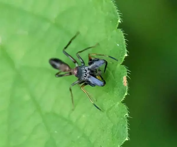 蚁蛛为蛛形纲、蜘蛛目、跳蛛科、蚁蛛属物种。其外形似蚂蚁。头部与胸部之间有紧缢,腹柄清晰可见。眼区几乎呈正方形。多营网于树叶(常见于桉树、大叶黄杨、构树)上,以蚂蚁和其它小昆虫为食。蚁蛛是八条腿的,仔细看很容易发现,蚁蛛的前一对足拟态成蚂蚁的触角,但又比触角粗很多。仔细看蚁蛛的头部可以看见和蚂蚁明显的区别,另外蚁蛛会跳会吐丝,蚁蛛有时候会模仿蚂蚁把第一队步足举起,但是总会有放下来的时候,所以蚁蛛和蚂蚁的运动模式也有些不同。