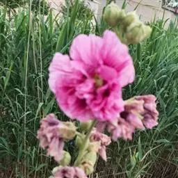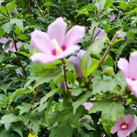 前方为开了一半的花后方为未开的花苞 常绿中型灌木或小乔木,一般有几米高,但最高可达15米。间有明显主干但并不强健,如植株高于7米以上需用支撑物或经修剪。树冠圆形,枝叶密集。树枝棕色。