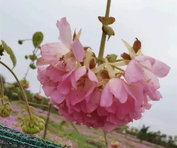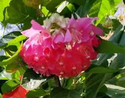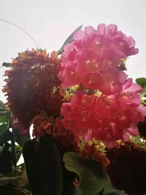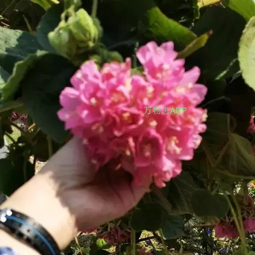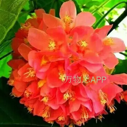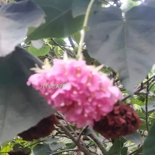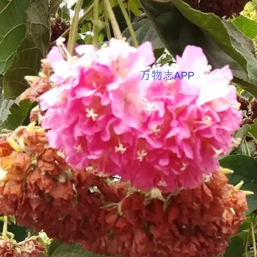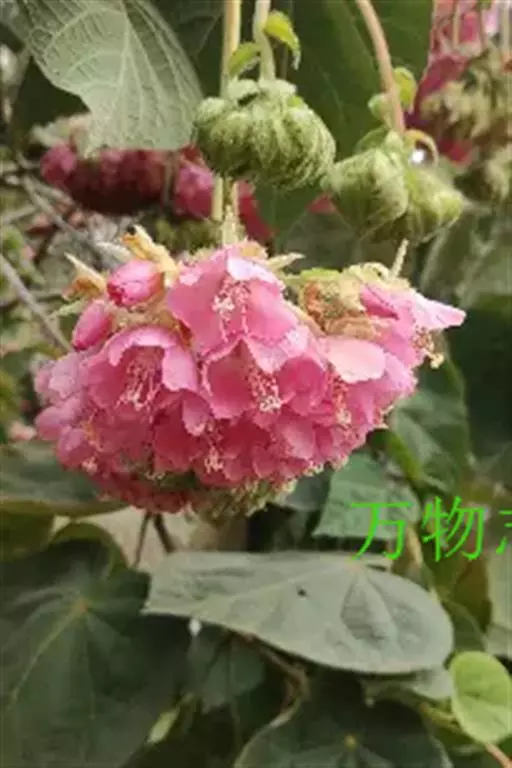 非洲芙蓉 (学名:Dombeya acutangula Cav.)是梧桐科,非洲芙蓉属常绿中型灌木或小乔木,高可达15米。树冠圆形,枝叶密集。树枝棕色,叶面质感粗糙,叶片互生,心形,叶缘顿锯齿,掌状脉,花从叶腋间伸出,伞形花序,冬季开花,12月至翌年3月开花。