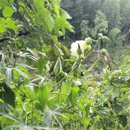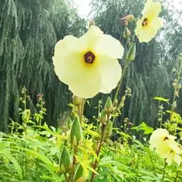 咖啡黄葵 Moench)亦称黄秋葵,是锦葵科一年生草本植物。茎圆柱形,疏生散刺。叶掌状,裂片阔至狭,…