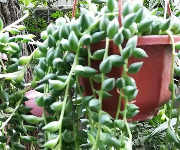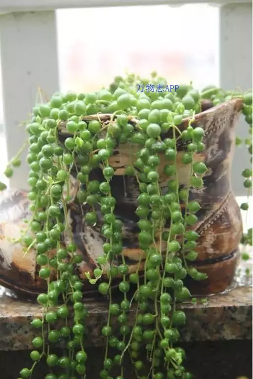 佛珠吊兰用小盆悬吊栽培,极富情趣,一粒粒圆润、肥厚的叶片,似一串串风铃在风中摇曳,是家庭悬吊栽培的理想花卉。