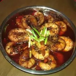 炒大虾是一道菜品,制作原料有大对虾、葱段、姜片等,用微火焖烤透,再将勺移正火,收汁微浓时放入味精,…