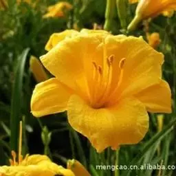 黄花菜 摺叶萱草多年生草本,高30~65厘米。根簇生,肉质,根端膨大成纺锤形。叶基生,狭长带状,下端重叠,向上渐平展,长约40~60厘米,宽2厘米~4厘米,全缘,中脉于叶下面凸出。