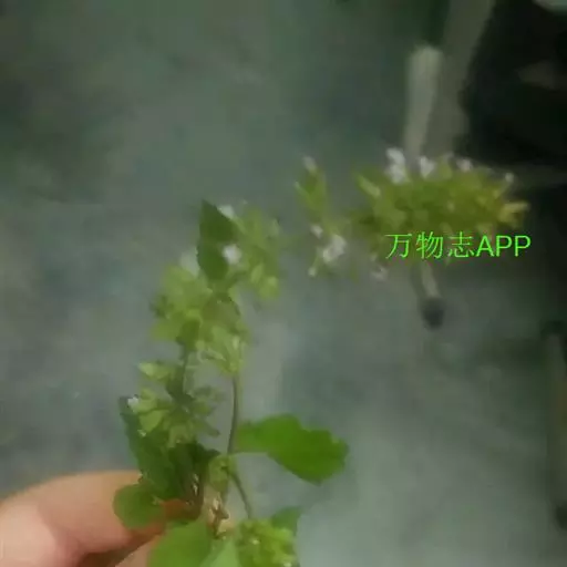 纤细草本。茎多数,自匍匐茎生出,柔弱,上升,不分枝或基部具分枝,高8-30厘米,径约1.5毫米,四菱形,具槽,被倒向的短柔毛。最下部的叶圆卵形,细小,长约1厘米,宽0.8-0.9厘米,先端钝,基部圆形,边缘具疏圆齿,较下部或全部叶均为卵形,较大,长1.2-3.4厘米,宽1-2.4厘米,先端钝,基部圆形或楔形,边缘具疏牙齿或圆齿状锯齿,薄纸质,上面榄绿色,近无毛,下面较淡,脉上被疏短硬毛,侧脉2-3对,与中肋两面微隆起但下面明显呈白绿色,叶柄长0.3-1.8厘米,腹凹背凸,基部常染紫红色,密被短柔毛;上部叶及苞叶卵状披针形,先端锐尖,边缘具锯齿。轮伞花序分离,或密集于茎端成短总状花序,疏花;苞片针状,远较花梗为短;花梗长约1-3毫米,被微柔毛。花萼管状,基部圆形,花时长约3毫米,果时下倾,基部一边膨胀,长约5毫米,13脉,外面沿脉上被短硬毛,其余部分被微柔毛或几无毛,内面喉部被稀疏小疏柔毛,上唇3齿,短,三角形,果时外反,下唇2齿,略长,先端钻状,平伸,齿均被睫毛。花冠白至紫红色,超过花萼长约1/2倍,外面被微柔毛,内面在喉部被微柔毛,冠筒向上渐扩大,冠檐二唇形,上唇直伸,先端微缺,下唇3裂,中裂片较大。雄蕊4,前对能育,与上唇等齐,花药2室,室略叉开。花柱先端略增粗,2浅裂,前裂片扁平,披针形,后裂片消失。花盘平顶。子房无毛。小坚果卵球形,褐色,光滑。花期6-8月,果期8-10月。