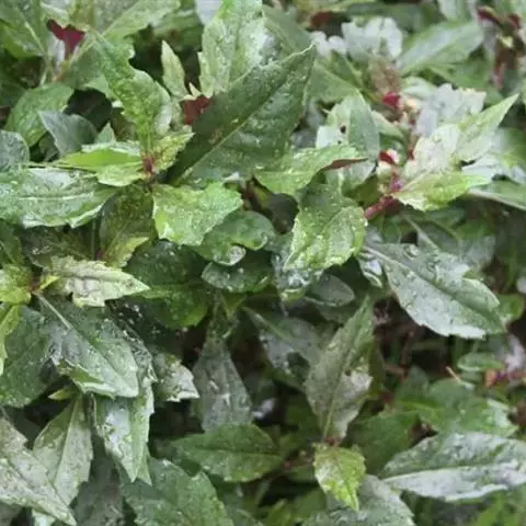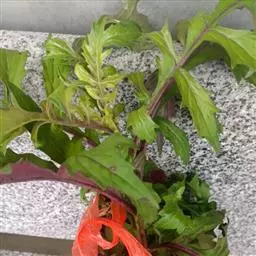 红凤菜 红凤菜,多年生草本,高50-100厘米,全株无毛。茎直立,柔软,基部稍木质,上部有伞房状分枝,干时有条棱。叶具柄或近无柄。叶片倒卵形或倒披针形,长5-10厘米,宽2.5-4厘米,顶端尖或渐尖,基部楔状渐狭成具翅的叶柄,或近无柄而多少扩大,但不形成叶耳。边缘有不规则的波状齿或小尖齿,稀近基部羽状浅裂,侧脉7-9对,弧状上弯,上面绿色,下面干时变紫色,两面无毛;上部和分枝上的叶小,披针形至线状披针形,具短柄或近无柄。