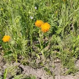 头状花序多数直径10毫米,在茎、枝端排列成疏伞房状;花序梗细,长3-4厘米,有1-2(3)丝状苞片。总苞狭钟状,长11-15毫米,宽8-10毫米,基部有7-9个线形小苞片;总苞片1层,约13个,线状披针形或线形,长11-15毫米,宽0.9-1.5(2)毫米,顶端尖或渐尖,边缘干膜质,背面具3条明显的肋,无毛。小花橙黄色至红色,花冠明显伸出总苞,长13-15毫米,管部细,长10-12毫米;裂片卵状三角形;花药基部圆形,或稍尖;花柱分枝钻形,被乳头状毛。