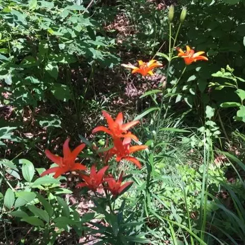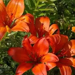 渥丹(学名:Lilium concolor Salisb.):鳞茎卵球形,高2-3.5厘米,直径2-3.5厘米;鳞片卵形或卵状披针形,白色,鳞茎上方茎上有根。茎高30-50厘米,少数近基部带紫色,有小乳头状突起。叶散生,条形,脉3-7条,两面无毛。花1-5朵排成近伞形或总状花序;花直立,星状开展,深红色,无斑点,有光泽;花被片矩圆状披针形,蜜腺两边具乳头状突起。蒴果矩圆形。花期6-7月,果期8-9月。