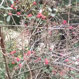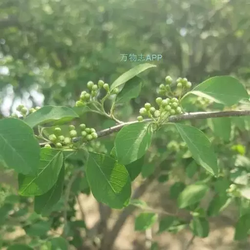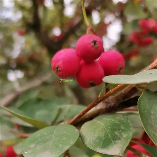 水栒子 落叶灌木,高达4米;枝条细瘦,常呈弓形弯曲,小枝圆柱形,红褐色或棕褐色,无毛,幼时带紫色,具短界毛,不久脱落。叶片卵形或宽卵形,长2-4厘米,宽1.5-3厘米,先端急尖或圆钝,基部宽楔形或圆形,上面无毛,下面幼时稍有绒毛,后渐脱落;叶柄长3-8毫米,幼时有柔毛,以后脱落;托叶线形,疏生柔毛,脱落。