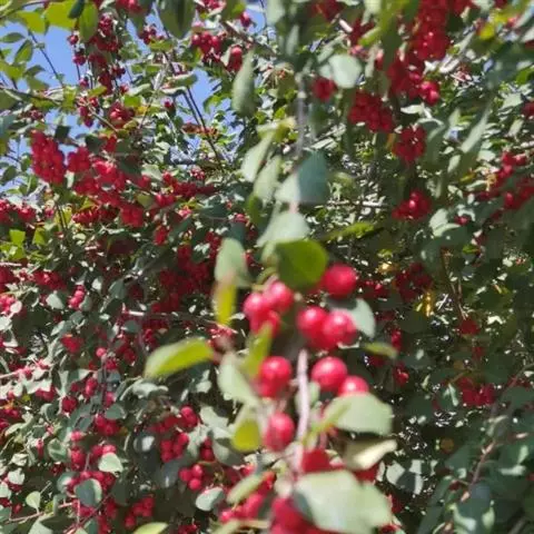 水栒子,初夏白花繁盛,入秋红果累累,像一把巨大的红伞,点缀草坪,在绿叶衬托下,白花红果艳丽可爱,是优美的观花观果灌木。水栒子宜丛植于草坪边缘、园路转角、坡地,是很好的园林绿化树种。