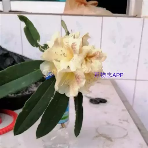 黄杯杜鹃:灌木,高约3米;幼枝嫩绿色,平滑无毛,老枝灰白色,树皮有时层状剥落。叶多密生于枝端,革质…