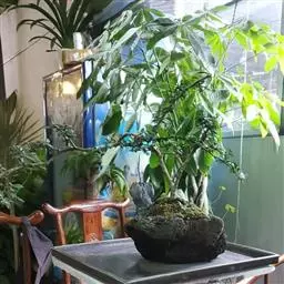 瓜栗 Walp. ),俗称发财树,木棉科小乔木,高4-5米,树冠较松散,幼枝栗褐色,无毛。小叶具…