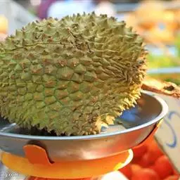 榴梿,是一种锦葵目、木棉科巨型的热带常绿乔木,叶片长圆,顶端较尖,聚伞花序,花色淡黄,果实足球大小…