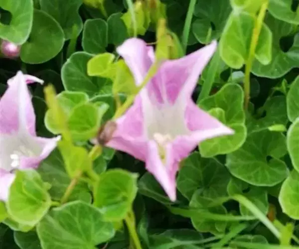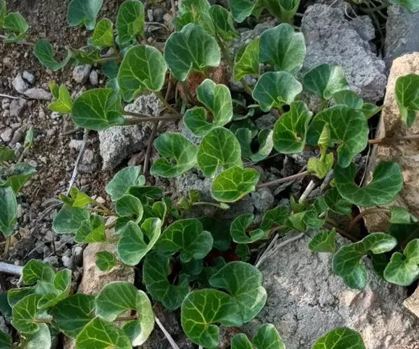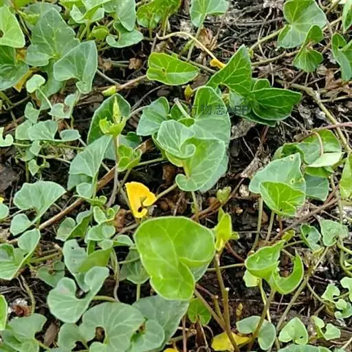 多年生草本,全体近于无毛,具细长的根。茎细长,平卧,有细棱或有时具狭翅。叶肾形,长0.9-4厘米,宽1-5.5厘米,质厚,顶端圆或凹,具小短尖头,全缘或浅波状;叶柄长于叶片,或从沙土中伸出很长。花腋生,1朵,花梗长于叶柄,有细棱;苞片宽卵形,比萼片短,长0.8-1.5厘米,顶端圆或微凹,具小短尖;萼片近于等长,长1.2-1.6厘米,外萼片长圆形,内萼片卵形,具小尖头;花冠淡红色,钟状,长4-5.5厘米,冠檐微裂;雄蕊花丝基部扩大,无毛;子房无毛,柱头2裂,扁平。蒴果卵球形,长约1.6厘米。种子黑色,长6-7毫米,表面无毛亦无小疣。