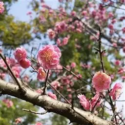 色:梅花的花色有紫红、粉红、淡黄、淡墨、纯白等多种颜色。“红梅”,花形极美,花香浓郁;“绿萼”,花白色,萼片绿色,重瓣雪白,香味袭人;“紫梅”,重瓣紫色,淡香;“骨里红”,色深红重瓣,凋谢时色亦不淡,树质似红木;“玉蝶”,花白略带轻红,有单重瓣之分,轻柔素雅。成片栽植上万株梅花,疏枝缀玉缤纷怒放,有的艳如朝霞,有的白似瑞雪,有的绿如碧玉,形成梅海凝云,云蒸霞蔚的壮观景象。
