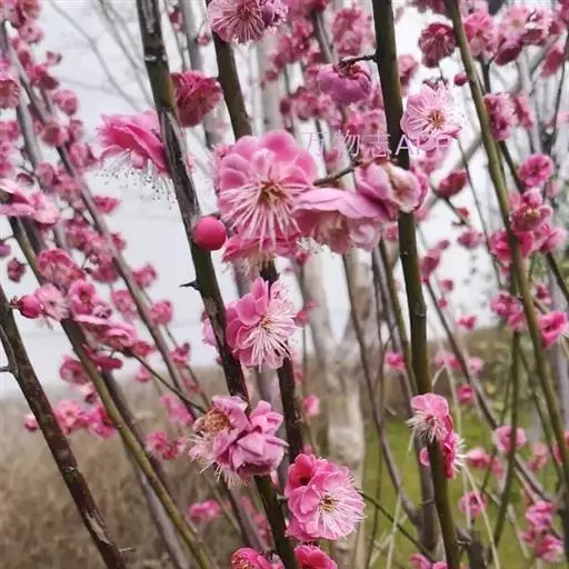 四、杏梅类(Armeniaca mume var. bungo Makino) 枝和叶似山杏;花半重瓣,粉红色,如杏梅、洋梅、送春等品种。花期较晚,抗寒性较强,可能是杏与梅的天然杂交种。
