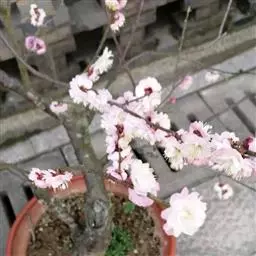 可以露地栽培,也可以盆栽,生长比较脆弱,水分管理要适当,切忌过湿,以免渍水烂根,导致桩头枯萎死亡,常给叶面和干枝洒水,对衰老桩景有养叶护根的作用。桩景栽培梅花需要进行重剪,使形成矮小树体,细枝可用棕丝蟠扎,粗枝需刀刻、斧劈、火烤弯曲造型。用老果梅作砧木嫁接,可适当多靠接几枝,然后进行造型,经过数年艺术加工和细心培养,桩景即可成功。