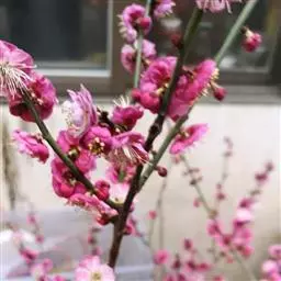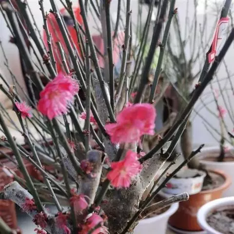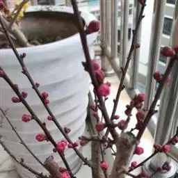 盆栽梅花应每隔1-2年在早春花后修剪完毕进行换盆、换土。如使盆栽梅花春节开花,在冬季落叶后放入室外自然休眠,元旦以后移入温室向阳处,室温保持8-12℃,每天向枝端洒水,并保持盆土湿润,使花蕾现色后,增温到1 5-20℃,则春节即可开花。如使“五一”开花,整个冬季需放在稍高于0℃的冷室内不见直射光,盆土保持相对干旱,直到4月上旬再逐步移到室外。