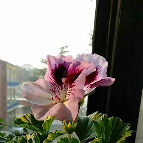 家天竺葵,多年生草本,高30-40厘米,茎直立,分枝。基部木质化,被开展的长柔毛。叶互生;托叶干膜质,三角状宽卵形;叶片圆肾形,基部心形或截形。伞形花序与叶对生或腋生,明显长于叶,具花数朵;萼片披针形,花冠粉红、淡红、深红或白色。