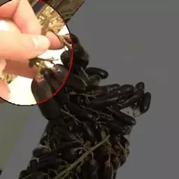 ⒍环剥:根据环剥的目的,确定不同环剥时间。如为了提高坐果率,要在开花始期进行;如为了增大果粒,要在浆果膨大期进行;如为了让果实提早成熟和增加糖分含量,要在内果实着色期进行。环剥的部位,要选粗壮的结果母枝顶端的结果枝着生果稿的前部3厘米处或前个节间进行为宜。工具用双刃环剥刀或芽接刀进行均可。剥口宽2-3毫米,深达木质部,将剥皮拿掉后,立刻用洁净塑料薄膜条包扎严紧即可。为了防止风折,再绑缚些木技或竹劈较为安全。