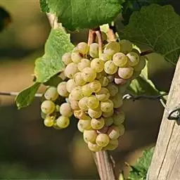 葡萄(学名:Vitis vinifera L.)为葡萄科葡萄属木质藤本植物,小枝圆柱形,有纵棱纹,无毛或被稀疏柔毛,叶卵圆形,圆锥花序密集或疏散,基部分枝发达,果实球形或椭圆形,花期4-5月,果期8-9月。