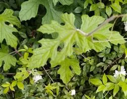 叶卵圆形,显著3-5浅裂或中裂,长7-18厘米,宽6-16厘米,中裂片顶端急尖,裂片常靠合,基部常缢缩,裂缺狭窄,间或宽阔,基部深心形,基缺凹成圆形,两侧常靠合,边缘有22-27个锯齿,齿深而粗大,不整齐,齿端急尖,上面绿色,下面浅绿色,无毛或被疏柔毛;基生脉5出,中脉有侧脉4-5对,网脉不明显突出;叶柄长4-9厘米,几无毛;托叶早落。