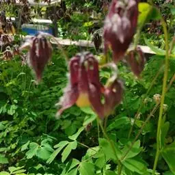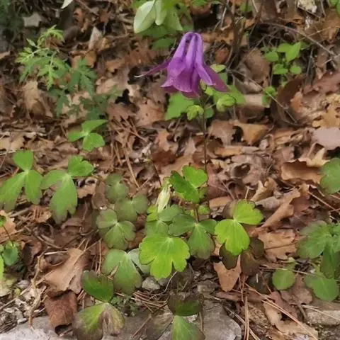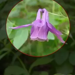 华北耧斗菜 多年生草本,高达60厘米,根粗壮,暗褐色,茎直立,圆柱形,具肋棱,上部被柔毛和腺毛。 基生叶有长柄,为一或二回三出复叶;小叶菱状倒卵形或宽菱形,先端三裂,叶面上无毛,下面被短柔毛;茎生叶与基生叶相似,较小,花数朵,下垂,构成聚伞形花序;花梗长,密被短腺毛;萼片5,紫色,卵状披针形;花瓣与萼片同色,顶端圆截形,有距,向内弯曲;雄蕊多数,心皮5,子房密被短腺毛。蓇葖果,种子小,黑色,有光泽 种皮上具点状皱纹,花期6-7月,果期7-9月。