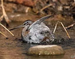 泽鹬:小型涉禽,体长19-26厘米。嘴长,相当纤细,直而尖。颜色为黑色,基部绿灰色,脚细长,…