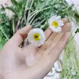 滨菊花开五六月份,头状花序,管状花黄色,舌状花白色,花梗细长直立,插花时间比较长。滨菊的"滨"与宾客的"宾"同音,宾客,友也。寓意朋友间的友谊就象滨菊花那样纯洁、坦诚。