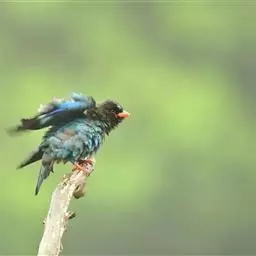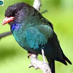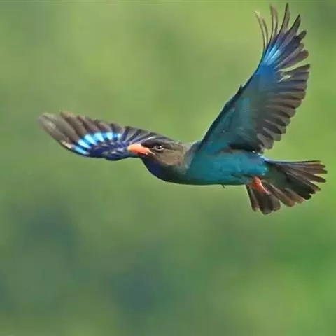 三宝鸟,是佛法僧目佛法僧科三宝鸟属中小型攀禽。成鸟通体为富有光泽的墨蓝绿色,…