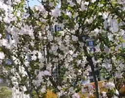 另需注意的是空间及海棠随着树龄增长而出现的树形变化。私家庭院空间较小,通常采用单株孤植。而机关大院、公共设施周围则比较灵活,某些直立型海棠三株丛植效果也不错。但一定要给每个个体留够充分的生长空间,避免挤到一起。