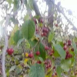 7至8月是观赏夏果的最佳季节,这时的叶色凝重稳定,将挂满树枝的红透透、黄澄澄的成熟果实衬托出来。能够食用的大果“道格”美艳惊人,香气扑鼻;“喜洋洋”春季鲜嫩的彩色也被翠翠的苹果绿替代,衬托着满树灯笼状洋红的一串串美果,远看像是满树红花;“红玉”的果实经过了6月不起眼的苹果绿、7月的白绿后染上红晕,到夏末时红透透的,像一串串红宝石垂挂在飘逸的柔枝上。“丰盛”、“印第安魔力”、“雪坠”果实颜色差异很大,挂果量大到让人感到不可思议。 北美海棠 海棠果的宿存期,不同品种落果时间差异极大,甚至有长达几个月。 北美海棠系列 小苹果 在苹果成熟季节会自然成熟后脱落。而宿存期长的多是小果类一般来说,能够食用的大果品种。