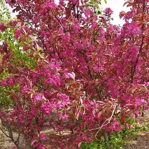 北美垂枝海棠,砧木(用苹果及海棠类)来源广泛,也填补了国内没有红叶垂枝类植物的空白,