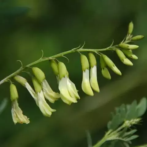 总状花序生3-5花,排列紧密或稍稀疏;总花梗极短或长达数厘米,腋生;花梗极短;苞片披针形,较花梗长;花萼管状,长7-9毫米,被细伏贴毛,萼齿线状披针形,与萼筒等长或稍短;花冠淡黄色或白色,旗瓣倒卵状椭圆形,先端微凹,中部稍缢缩,下部稍狭成不明显的瓣柄,翼瓣较旗瓣短,瓣片长圆形,先端微凹,较瓣柄长,龙骨瓣较翼瓣短,瓣片半长圆形,与瓣柄等长或稍短;子房有短毛。