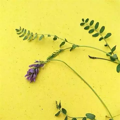 羽状复叶有7-15片小叶,长5-17厘米;叶柄与叶轴等长或稍长;托叶下部与叶柄贴生,长4-7毫米,上部呈三角形至披针形;小叶椭圆形或近圆形,有时披针形,长7-20毫米,宽3-8毫米,先端锐尖、渐尖,有时稍钝,基部宽楔形或近圆形,两面密被伏贴毛。