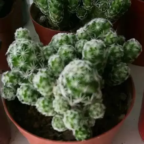 银手球,仙人掌科乳突球属,植株群生,小短圆筒形。原产墨西哥伊达尔戈州。