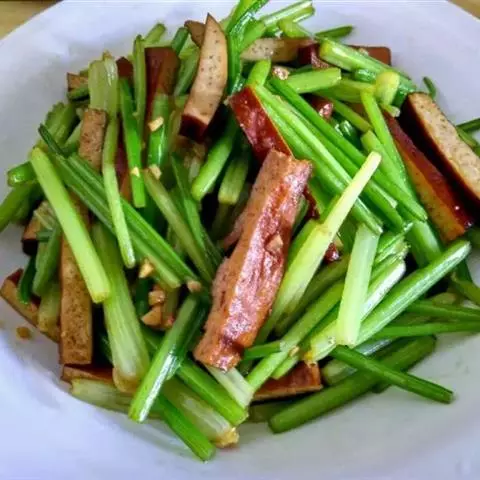 韭菜炒香干是一道菜品,制作原料主要有韭菜、香干等。鲜嫩可口,有点小小的微辣,加入切成段的韭菜,翻匀,待韭菜变软即可起锅。