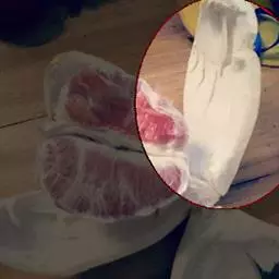 灌水后的猪肝虽然颜色还是红色,但明显发白,外形膨胀,捏扁后可以立即恢复,剖切时向外流水。