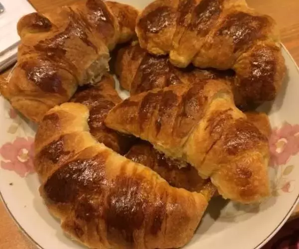 对人的负面影响:可颂高脂肪高能量,含反式脂肪酸。凡是起酥面包均有这个问题。