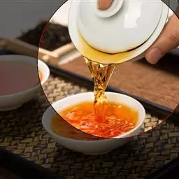 此茶冲泡后其汤色呈琥珀金骏眉色,具淡而甜的蜜香,品之甘甜润滑,叶底芽头挺拔、呈鲜活的古铜色。