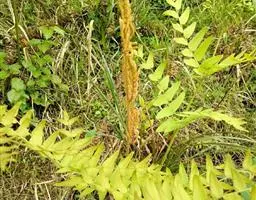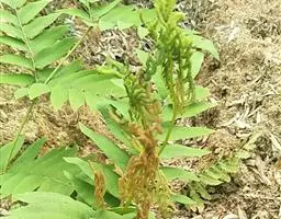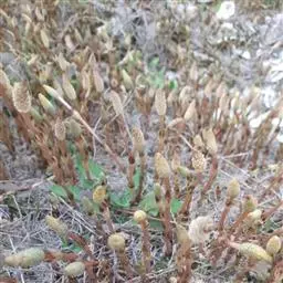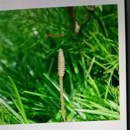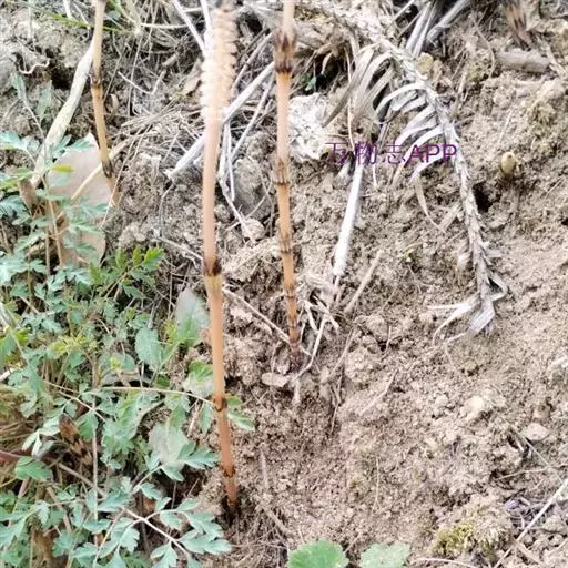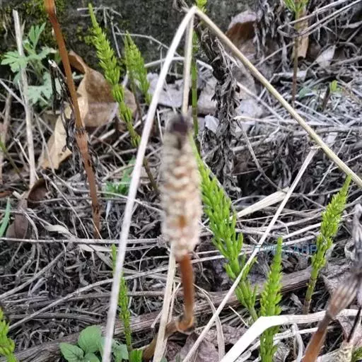 问荆(学名:Equisetum arvense L.):是木贼纲、木贼科、问荆属中小型蕨类植物。根茎黑棕色,地上枝当年枯萎。枝二型。高可达35厘米,黄棕色,鞘筒栗棕色或淡黄色,栗棕色,狭三角形,孢子散后能育枝枯萎。不育枝后萌发,鞘齿三角形,宿存。侧枝柔软纤细,扁平状,孢子囊穗圆柱形,顶端钝,成熟时柄伸长。