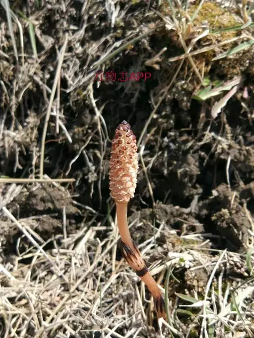中型植物。根茎直立和横走,黑棕色,节和根疏生黄棕色长毛或光滑。地上枝当年枯萎。枝二型,能育枝与不育枝同期萌发。能育枝高15-25厘米,中部直径2.0-2.5毫米,节间长2.0-3.0厘米,禾秆色,最终能形成分枝。孢子囊穗椭圆柱状,长1.0-2.2厘米,直径3-7毫米,顶端钝,成熟时柄伸长,柄长1.7-4.5厘米。