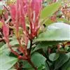 是蔷薇科石楠属杂交种的统称,为常绿小乔木或多枝丛生灌木,单叶轮生,叶披针形到长披针形,新梢及嫩叶鲜红色,老叶革质,叶表深绿具光泽,叶背绿色,光滑无毛。顶生伞房圆锥花序,小花白色,花期4月上旬至5月上旬。红色梨果,夏末成熟,可持续挂果到翌年春。 园林中常用的有红罗宾'RED Robin'和红唇'RED Tip'两个品种,其中红罗宾的叶色更加持久鲜艳,观赏性更强。红叶石楠主要产于亚洲东部和东南部、北美洲的亚热带和温带地区。 另外还有火艳`Camelvy'、鲁宾斯'Rubens'、 强健'Rubusta'等品种。